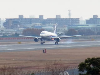 コンデジの最大望遠じゃA320の着陸もこの小迫力。