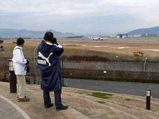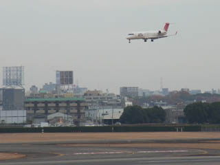 小型機が多い伊丹空港、たくさんの飛行機がちょうど目の前で離陸していきます。