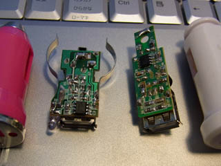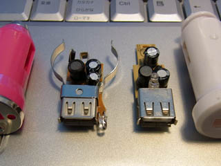 ここからは160円で買ってきた(&ソッコー壊れた)あき○お~のUSB充電シガープラグ(右)と見比べつつ。