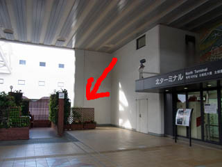 まず、JALの入ってる北ターミナル入口にある喫煙所脇の通路を探します。