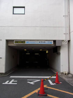 その通路を抜け、そのまた奥の屋内駐車場入口に行くと、