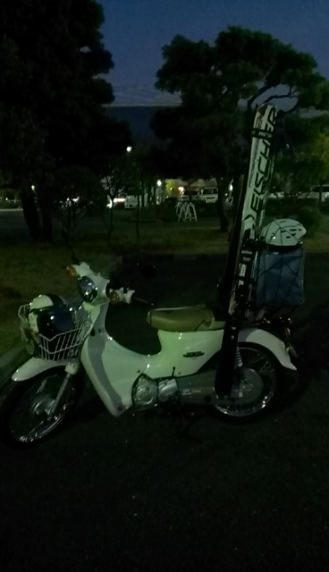 しっかし前カゴには正月飾りがぶら下がってるし、後ろにはスキー積んでるし、そりゃすれ違う車の運転手も笑っちゃうよね(笑)。