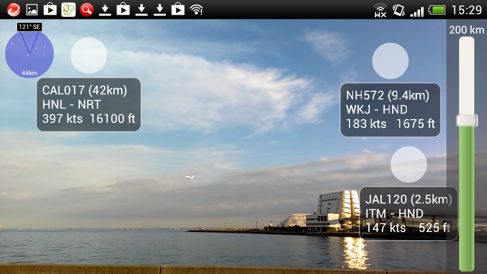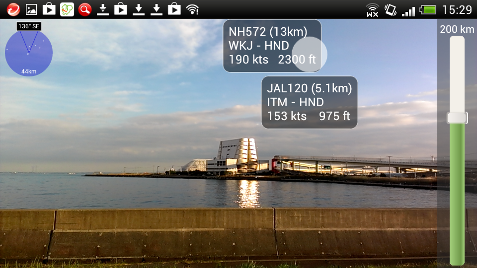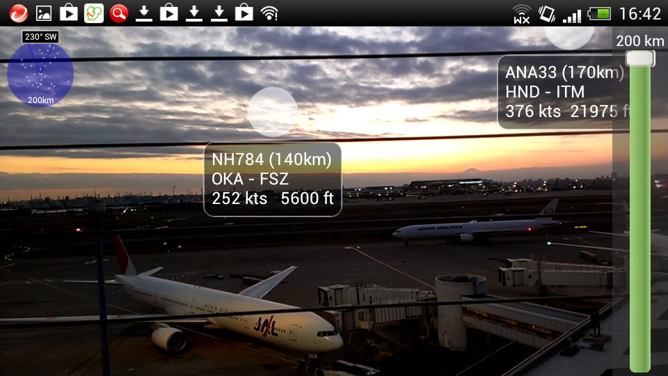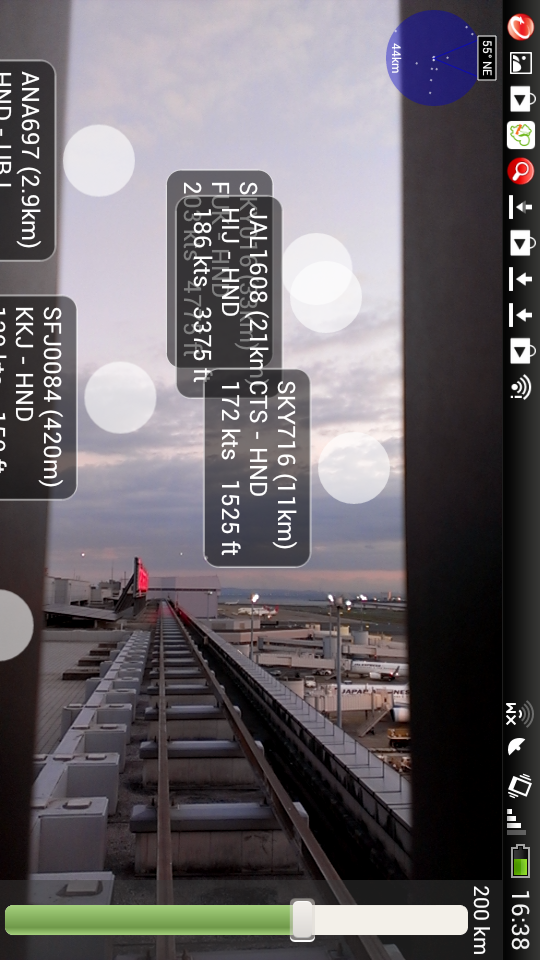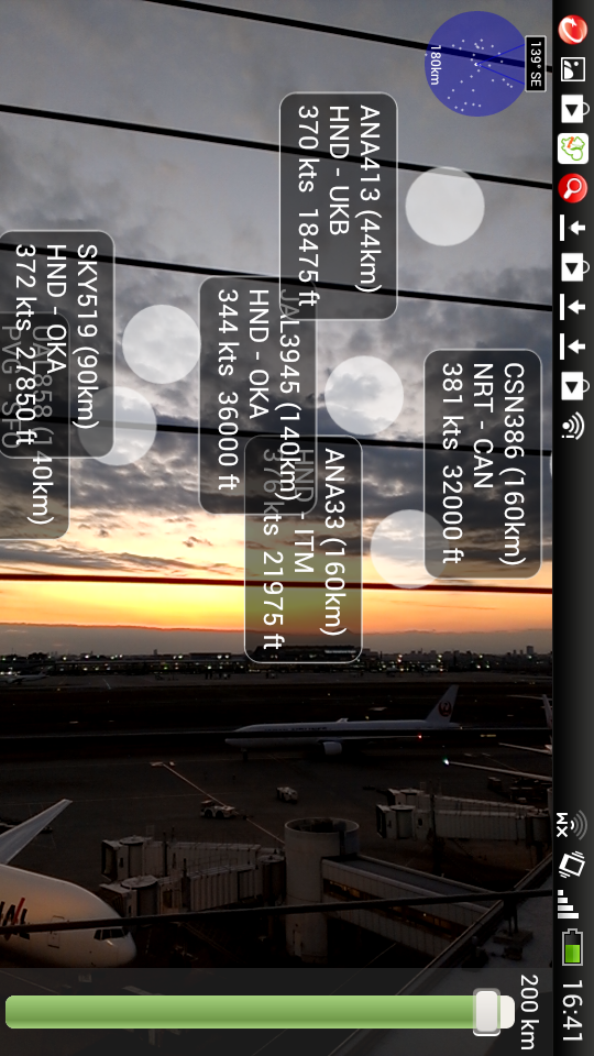 なんとスマホのカメラをその飛行機の方向に向けると、こういう風にして飛行機の情報を画面上に表示してくれるのです。