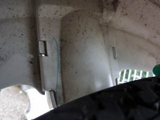 カバーを閉じたところで、赤い矢印で示したエアクリカバー側のエアクリーナードレンチューブ(黒いゴム製のもの)が割れていることに気付きました。