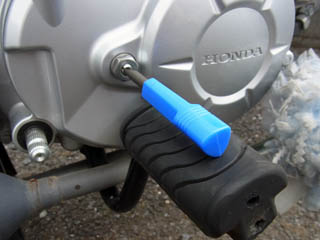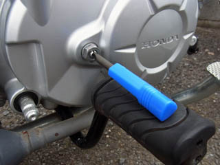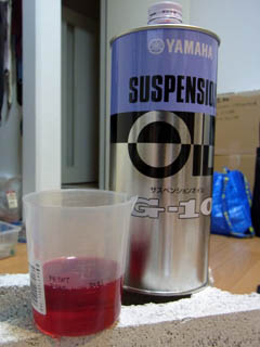 フロントフォークがブレーキのかけ始めで「コツン」という音がしてから動作し始める状態だったので、納車以来2年4ヶ月・23,200km無交換だったフロントフォークのフォークオイルを交換してみることにしました。