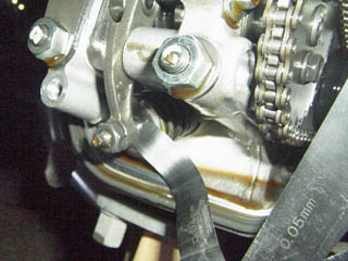 この状態で、シックネスゲージで給排気両方のタペットクリアランスを調べてみます。