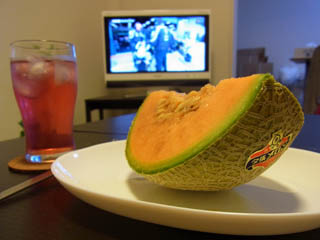 motoGPを観ながらの、癒しの夕張メロンタイム。