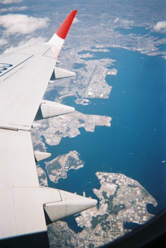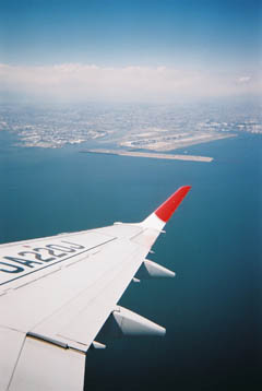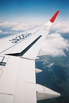 熊野市上空で降下のためベルトサイン再点灯。再び写ルンですを投入。