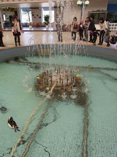 展示スペースでも何でもない噴水に、ペンギンが。
