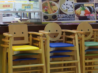 忙しい時間を過ぎて片づけられたイスが、なんとも。