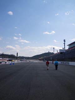 横断しただけど、コースも歩けました。ホームストレートから1コーナーを。