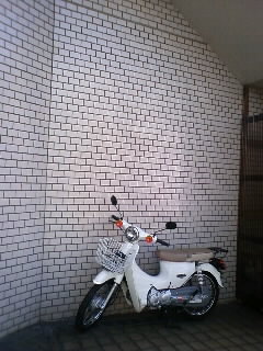 普段スーパーカブ110にはカバーをかけてあるけど、風が強いとカバーが風をモロに受けてカブが倒れることもあるので、朝仕事に出かける前にカバーを外して、ついでに風の影響の少なそうなところに移動しておきました。